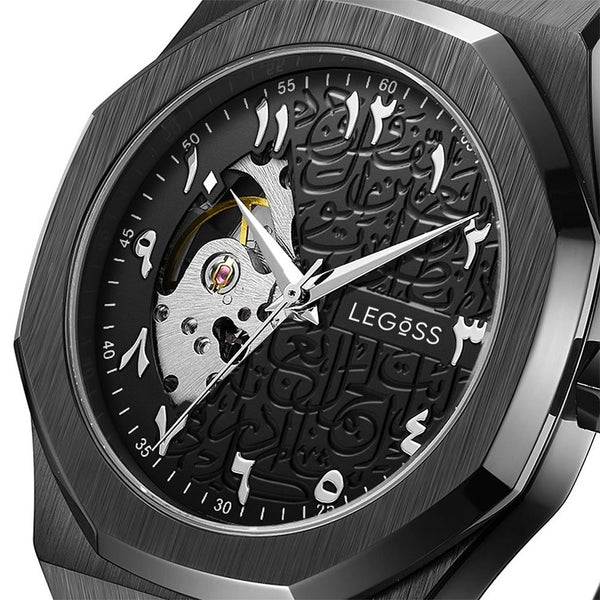 El reloj Arabic Elegance™ no es solo un accesorio. Es una declaración de gusto, un símbolo de herencia y distinción. Su numeración arábiga caligráfica y diseño “skeleton” dejan ver el alma de su mecanismo, proyectando sofisticación en cada movimiento.