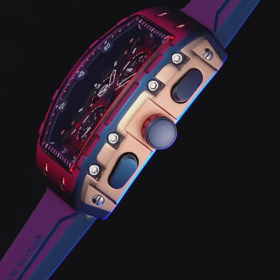 Esfera deportiva hueca estilo Richard Mille, con acabados modernos en azul, rojo o negro.