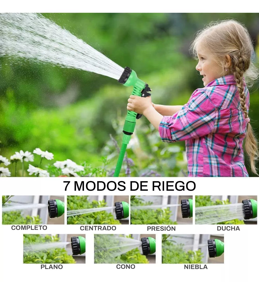 Nuestra manguera te ofrece 5 modos de riego con solo girar la llave, lo que te brinda la máxima versatilidad y facilidad de uso.